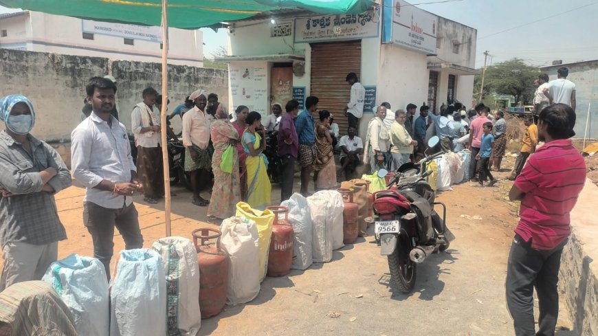 గ్యాస్ కోసం వచ్చిన వినియోగదారులకు కనీసం మంచినీళ్లు కూడా ఏర్పాటు చేయని గ్యాస్ గోదాం యాజమాన్యం